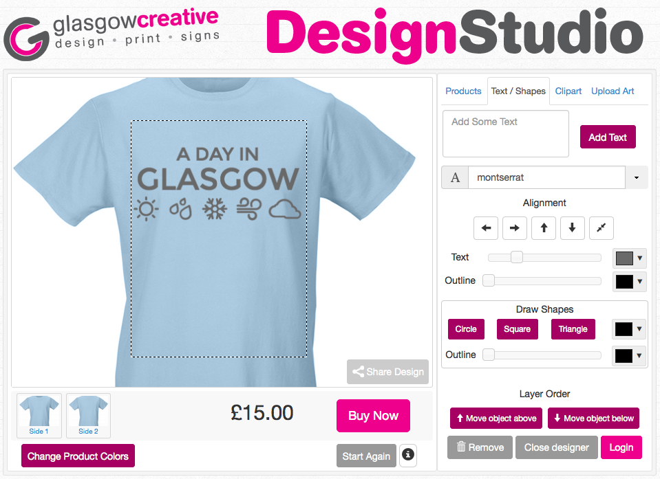 We have big news this week: we now offer t-shirts as part of our print and design services! Our "new baby" arrives on Monday, so in advance, we are proud to announce our brand-new t-shirt website, tshirtsglasgow.com where you can can create and order one-of-a-kind custom shirts.